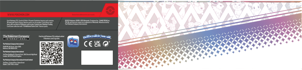 • wyjątkową kartę promocyjną z ilustracją w unikalnej stylistyce, przedstawiającą Eevee jako Stellar Tera Pokémon ex, gotowego do przemiany dzięki Tęczowemu DNA